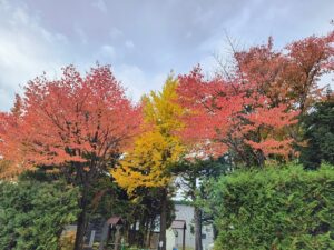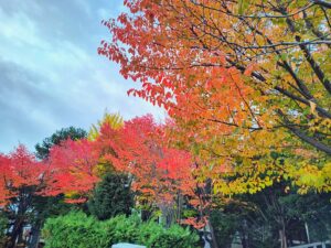 秋が深まってきました。木々が色づき境内がきれいに彩られています。