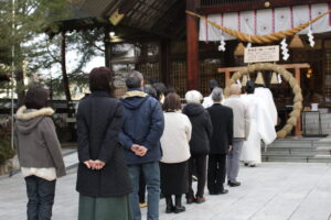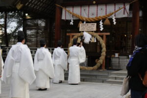 令和7年12月1日、早朝のさわやかな空気のもと、今年の「茅の輪神事」を行いました。
